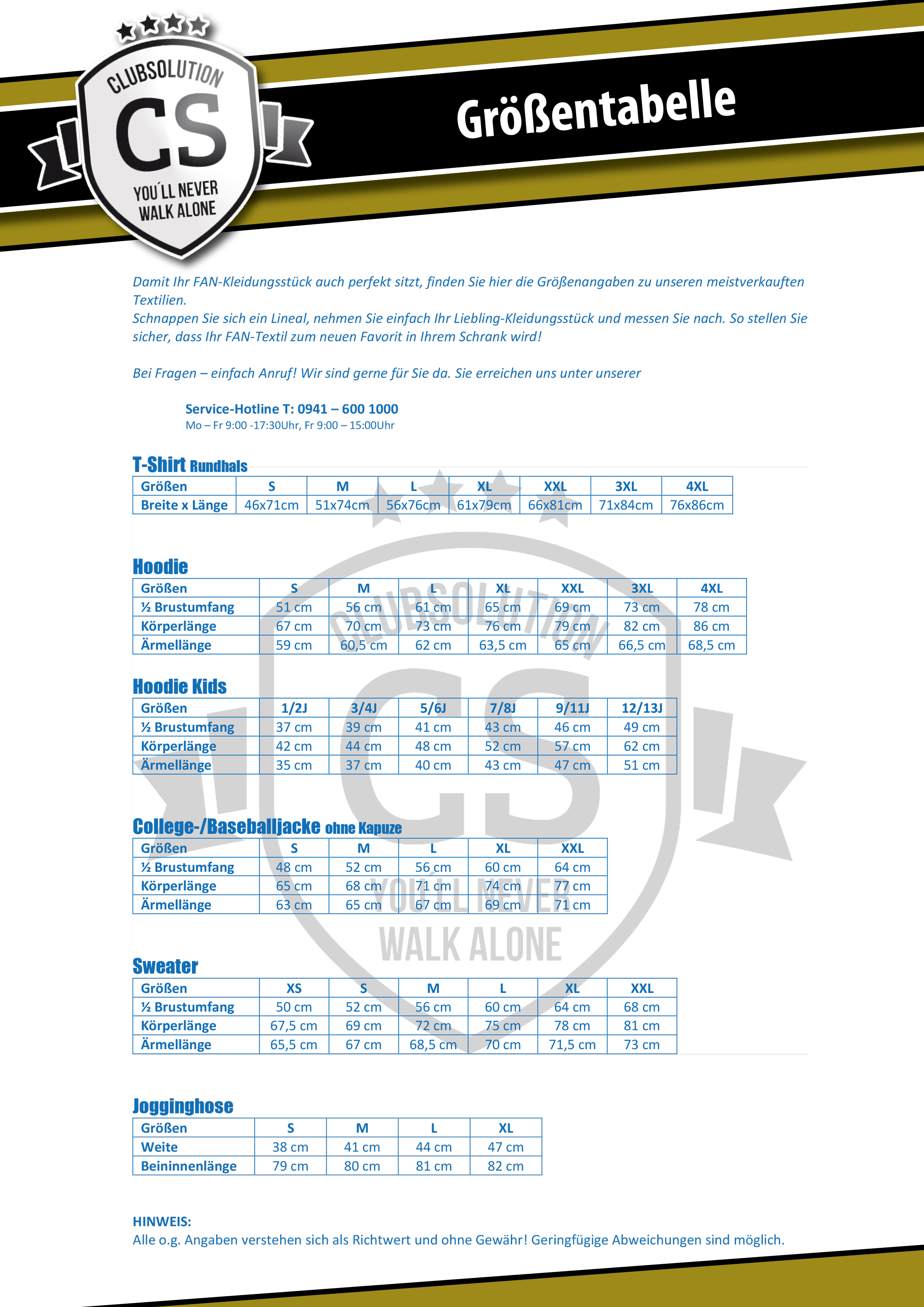 Größentabelle: